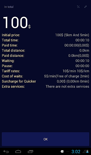 The program for taxi drivers, both owner-driver and taxi station drivers, wishing to carry people catching the car (work by yourself). It will suit for passengers to control their trip and even for auto-travelers who want to consider time and length of their routes. We try to make the most convenient and understandable taximeter for android for drivers. We created taximeter by taxi drivers for taxi drivers. Our users - experienced taxi drivers give their recommendations when we were creating the taximeter. You can use our taximeter free and no charge for transportation passengers and you may leave suggestions and comments. We do not ask for money or show ads.