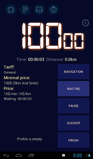 The voice of the beginning and ending of the trip, including the voice of cost. Some sounds can be change by specifying their sound file. At the end of the trip, the taximeter will issue a detailed report on the cost of the trip and additional services (if they were). On the ‘’NAVIGATOR’’ button you can go to the navigator. Taximeter maintains such navigation programs: Navitel, Waze, Yandex maps, Yandex Navigator, CityGuide, GeoNET, 2GIS and many others. Internet connection is not necessary for work.