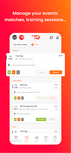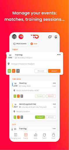 🔔 NOTIFICATIONS & REMINDERS: Stay informed in real-time about events and important messages with instant notifications. Automatic reminders by notification allow players who have forgotten to report their presence to do so quickly, ensuring better organization.