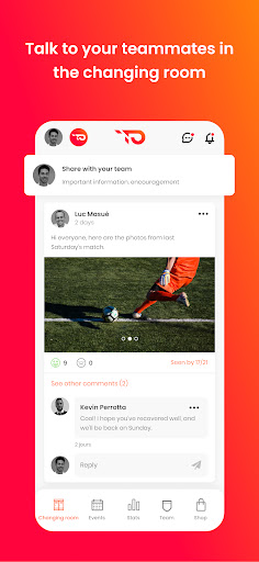 💬 SOCIAL: Enjoy a dedicated space for each team, the Locker Room, where each member can express themselves, react, and share photos, videos, or documents with the whole group. Create a friendly atmosphere and strengthen team spirit.