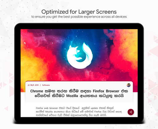 මේ app එක නිර්මාණය කිරීමේදී අපි විශේෂයෙන්ම අවධානයක් යොමු කළේ, මෙය භාවිතා කරන ඔබට Ads නැති, බරින් අඩු වගේම සරල interface එකක් සමඟින් ඉක්මණින්ම news ලබා දෙන එක ගැනයි.