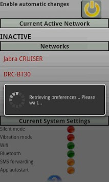 You can set the app to change your phone's settings by creating different profiles to any of the Wifi and Bluetooth networks you connect to.