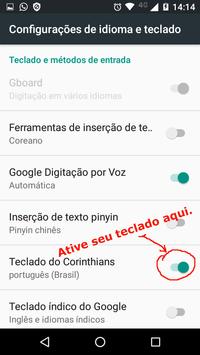 Não se esqueça de ativar o TECLADO DO CORINTHIANS em suas configurações do Android.