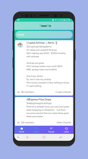 Teeeme lists more than 30,000 telegram channels spread across 25 categories for easy discovery. You can browse through all the channels in a particular category or directly search for channels.