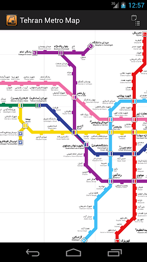 A simple, scrollable and zoomable map of the Tehran Metro system.