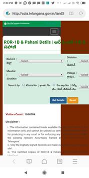 Note:- This is not Telangana Govt official app. it's showing data from telangana mabhoomi Darani and ccla website.