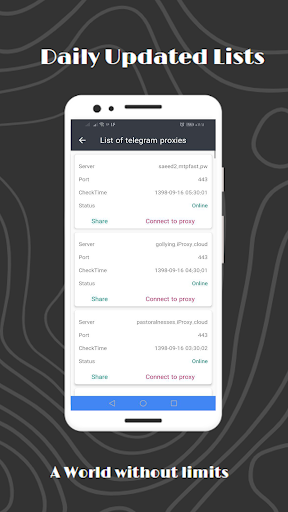 All you need to do is click on the rocket button on middle of screen. Then you will go to the telegram application installed on your device and connect to the proxy server.