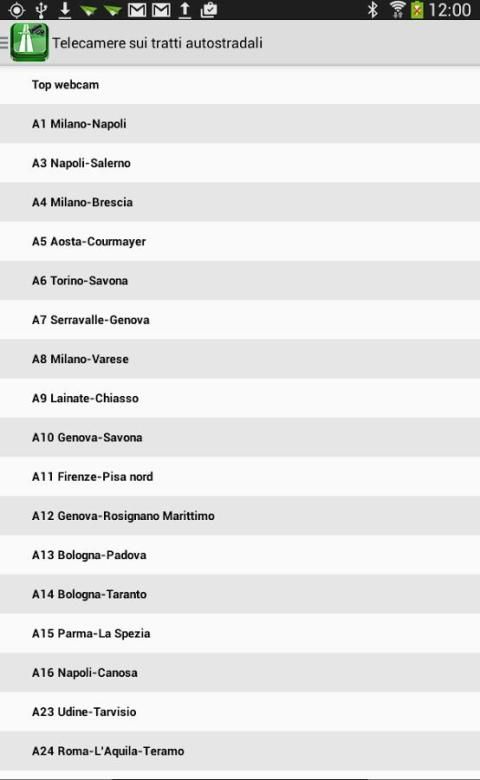 L’applicazione comprende l’elenco completo delle telecamere presenti sulle arterie autostradali d’Italia; non dovrai fare altro che selezionare la tua area di interesse, se nord, centro o sud e selezionare la telecamera del tratto di pertinenza.