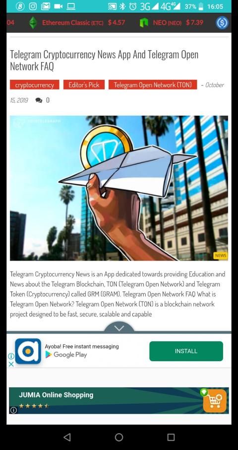 Telegram Cryptocurrency News is an App dedicated towards providing Education and News about the Telegram Blockchain, TON (Telegram Open Network) and Telegram Token (Cryptocurrency) called GRM (GRAM).
