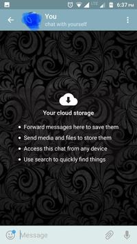 UNLIMITED: You can send media and files, without any limits on their type and size. Your entire chat history will require no disk space on your device, and will be securely stored in the Telegram cloud for as long as you need it.