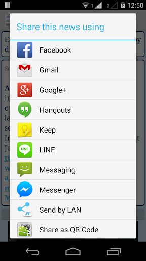 You can share the news by SMS, email, etc. also through your installed apps like Facebook, Google , etc.