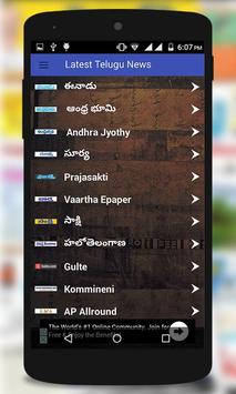 You can Read all Telugu News papers from one app like Eenadu, Andhra Bhoomi, Andhra Jyothi, Suryaa, Andhra Prabha, Praja sakthi, Vaartha, Sakshi, Namasthe Telangana, AP Allround, etc.....