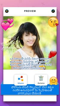 Our Telugu Text on pictures feature allows you to write text on photo with animations. Import photo from camera or gallery and add text with animation, cool fonts, color and music to make your memorable photo unforgettable. Write on photo and apply effects to share your all friends.