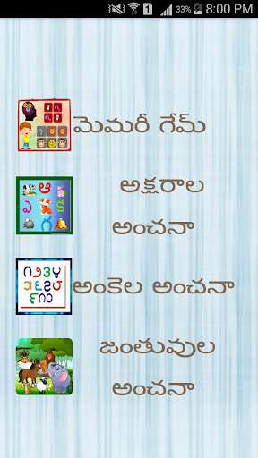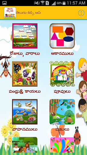 The Telugu Kids Learning App has been specially crafted for preschoolers by an eminent panel of subject experts. Featuring 24 different categories under a single roof the application is a one-stop complete resource of the preschool syllabus. Focusing on Multiple Intelligence and Brain-based learning the application alphabets, numbers.... and games. High definition images and sound quality contributes to a very unique user experience. A two-way interface enhances the overall child development as children are able to react and express themselves through age-appropriate games programmed in the app. We are introducing Telugu Kids App. It is a digital way of learning Telugu and basic concepts of mathematics for school kids. The app is self-explanatory so, it is helpful for first-time learners too. App has special features like a magic slate for fun-filled learning. It also contains Educational Games for kids. There are fun games that include identifying the pictures/words also memory games for kids.