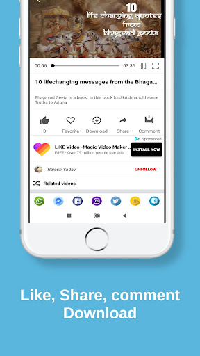 This app provides you best status videos readily available to share, and users can also upload their own status videos directly through app.Users can create their own profile and start uploading videos and gain followers.