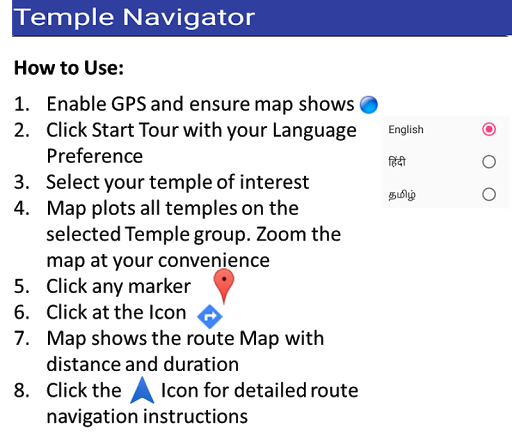 This application covers all the Siva Temples based on Google Maps and GPS navigation.