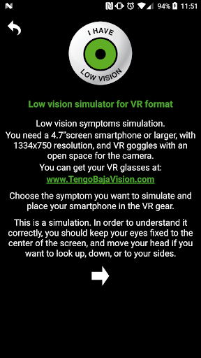 In summary, the aim of the app is to bring awareness about low vision in order to facilitate understanding and improve social interaction for persons with low vision.