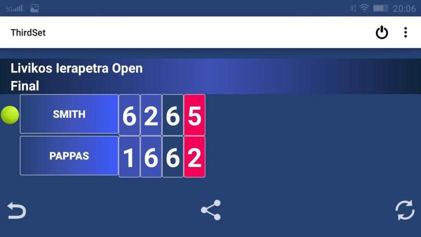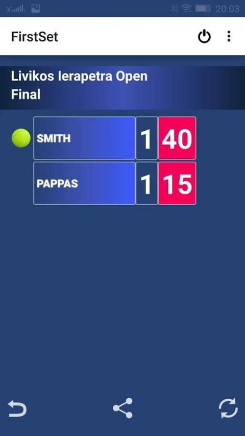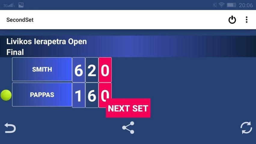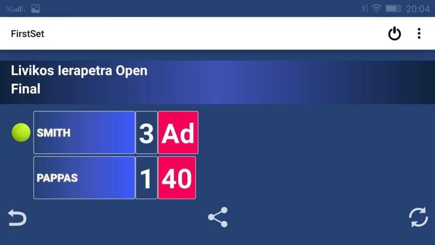 A simple, handy and useful app that allows you to keep up with the score of a tennis match. The main advantage of the app is that it you can share the scoreboard image with your friends in social media.
