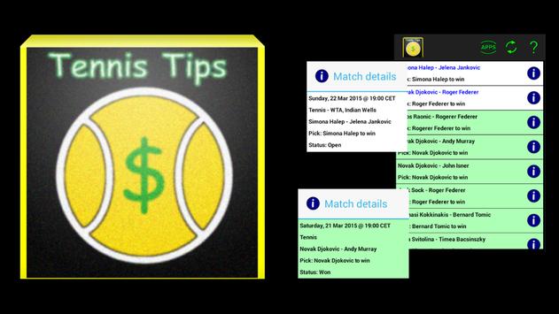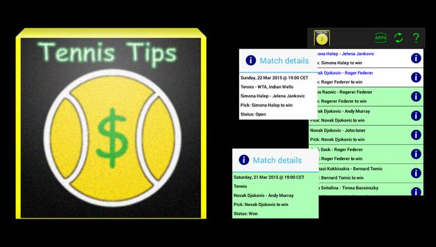 Tennis Tips is a useful app for all tennis lovers. It provides outcome predictions also known as betting tips for tennis matches. Predicting tennis game is much easier than for example a soccer match. This is because there are only two possible scenarios - either player A or player B can win whereby in soccer there are 3 outcomes: team A, team B or a draw. Another good thing about tennis is that it has tournaments and challenges all year for both single games and doubles. The most popular and famous ATP and WTA tennis tournaments include: