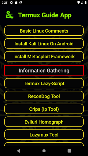 An application that has plenty of open-source tools guides. It's easy to copy and use them on your Termux terminal. You can use these tools for penetration tester, ethical hacking, Security and for education Purpose also.