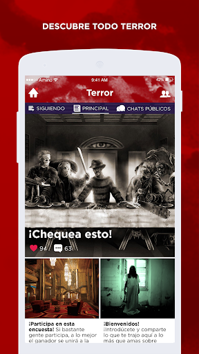 La red social más grande solamente para los amantes del terror. Conoce otras personas como tú y discute tus peliculas favoritas, reseñas, creepypastas y más. Comparte tu opinión con una audiencia enorme de personas con ideas afines a las suyas. En esta aplicación puedes:
