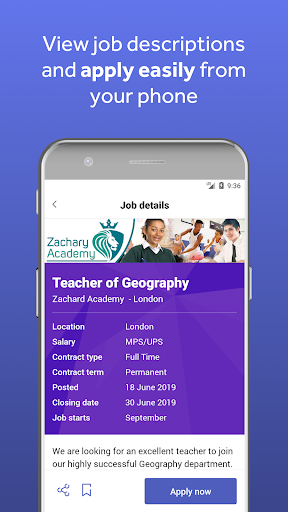 Save jobs: if you’re not ready to apply for a job on your mobile device, you can save it to come back to later, either within the Tes app or on the Tes website.