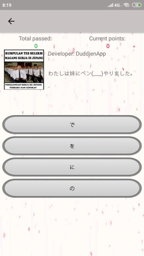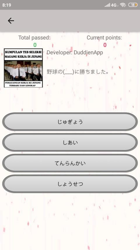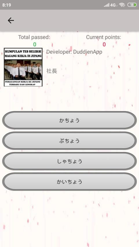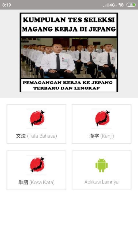 Aplikasi Tes Seleksi Magang Ke Jepang - IM Japan 2019 membantu Anda memahami belajar bahasa Jepang tingkat pemula.