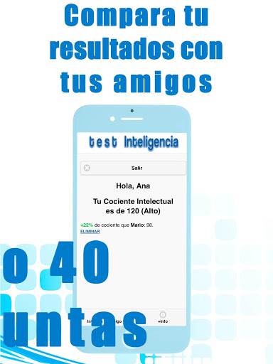 Descarga la App Ahora y realiza tu Test de Inteligencia en unos minutos para calcular tu Cociente Intelectual. El Cociente Intelectual es una estimación aproximada que pretende calcular mediante test tus capacidades intelectuales.