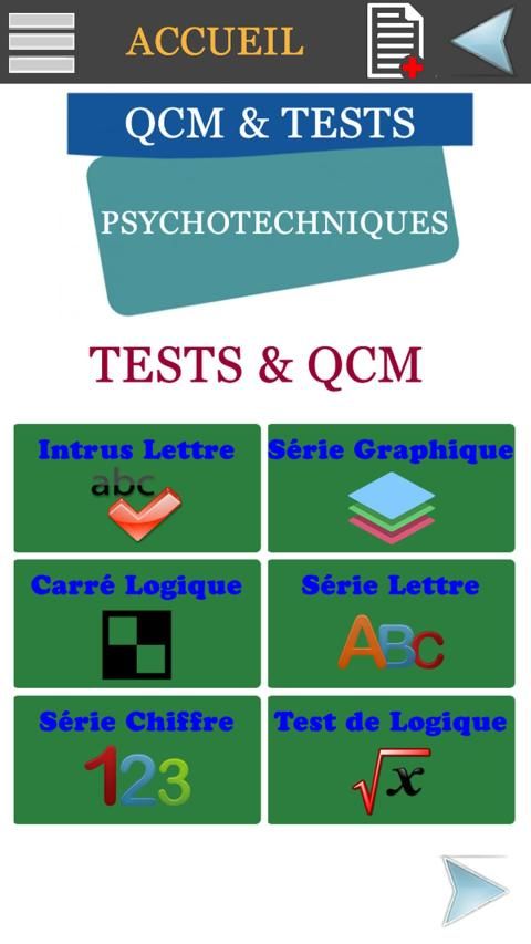 TEST PREPARATION TESTINGAVOID THE Pitfalls OF multiple-choice EXAMINATIONS AND COMPETITIONSDiscover other methods of reasoning, and resolutions of exercises Optimize your chances of success in the contest thanks to this new app, qui offers QUIZZES of all kinds in 300 Questions: DominoesMapsMathematics - Attention TestsTest observationVocabulary and DefinitionSpelling and GrammarSayingsCalculation mentalEstimates and percentageSmall problemsSheet logic of math courses ...