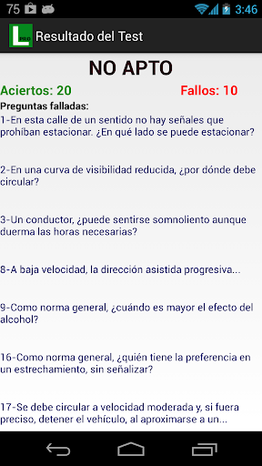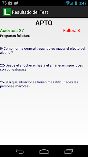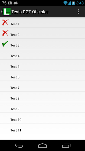 -En la lista de tests marcara con stick verde si lo has aprobado o con una aspa roja si lo suspendiste