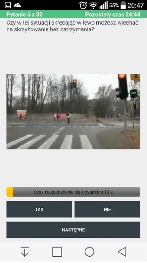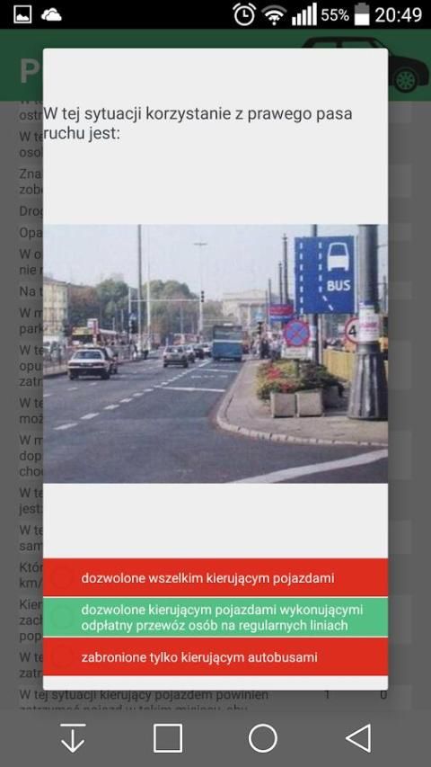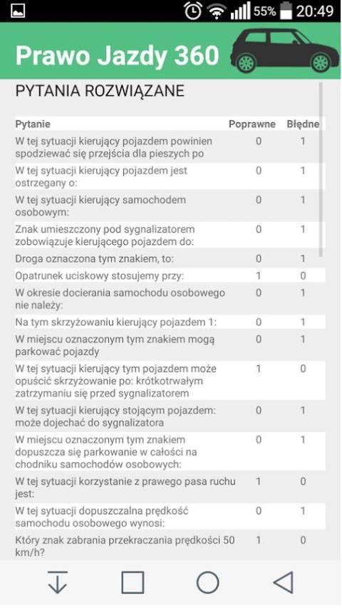 - TEST – możliwość wykonywania testów na prawo jazdy z takimi samymi pytaniami oraz z takim