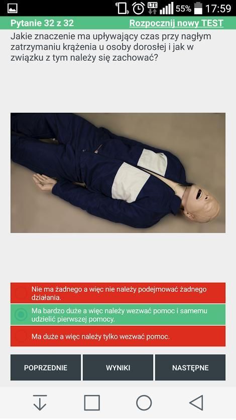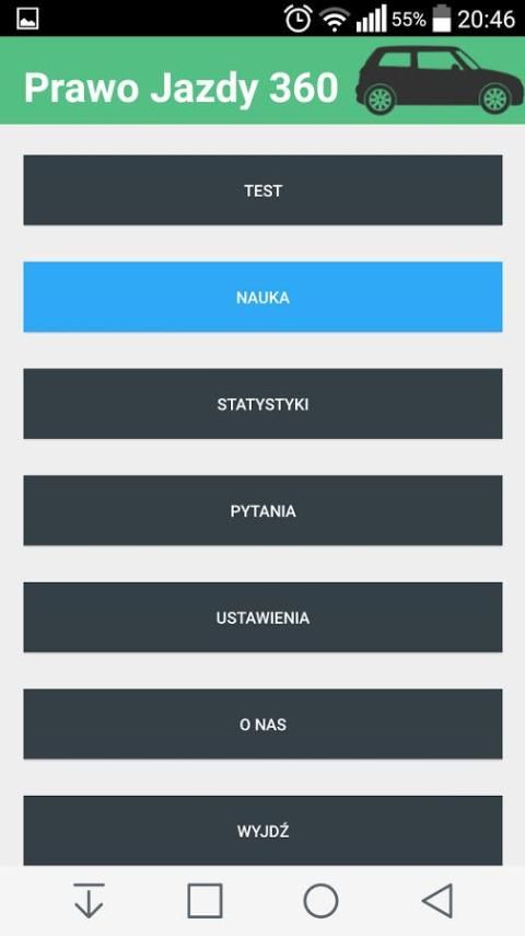 - NAUKA – umożliwia sprawdzenie i nauczenie się wszystkich pytań