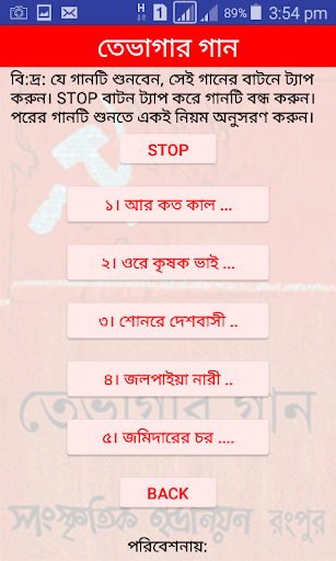 In many areas the agitations turned violent, and landlords fled, leaving parts of the countryside in the hands of Kisan Sabha. In 1946, sharecroppers began to assert that they would pay only one-third and that before division the crop would stay in their godowns and not that of the Jotedars. The sharecroppers were encouraged by the fact that the Bengal Land Revenue Commission had already made this recommendation in its report to the government. The movement resulted in clashes between Jotedars and Bargadars. To encourage the Bargadars to continue this movement the local singer of the Bangla area sung many song, this songs are known as Tevagar Gan.