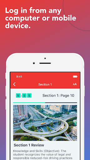 -> Your progress syncs automatically across all of your devices. You can start your drivers ed course on your smartphone, and finish it on your parent's smartphone, we don't judge.