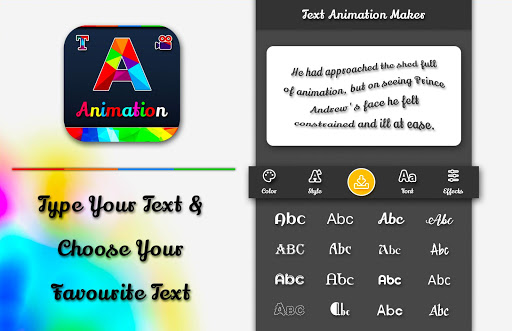 Background Text animation app where you can overlay colorful background with text animation. You can change the background color with color wheel easily. You can also change the text color with colorful wheel easily