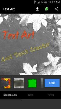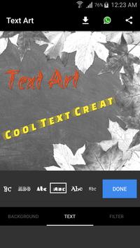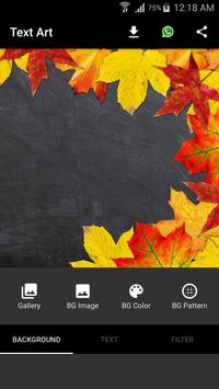 Text Art is the best Text Editor apps to create text art. With Text art you can create wonderful text art very easy and quickly. Text Art allowing you to share the text art that you created to your friends, your family and your lovely person with your favorite social media like Facebook, WhatsApp, Twitter, Instagram and others. Text Art have so many features that help you create amazing text art with this text editor and text creator. Text Art have so many beautiful font, background image, background color and with Text Art you can use your own picture from your gallery to maximize text art that you created.