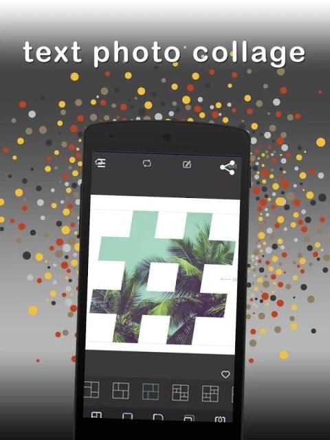- Text Photo Collage Editor will help you to master on creating Text Shape related photo collage. Use this photo grid maker app to create awesome effect on splendid photo collage. It is also an adequate photo editor, in addition to these; Text Photo Collage Maker is the easiest pic stitching tool out there!