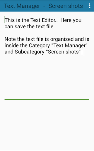 5. Saving File: User can save the file by pressing Save to in the Menu or Simply a back from a View will save a text file. If user press the Home button and then Clear the App or App is closed by other ways the File will not be saved. Best practice is to Save a file before leaving app.