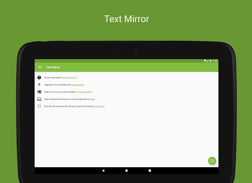 Text Mirror is not supported by all Android device's and Android Versions. If you face any problems with your device or have any questions or feedback, feel free to send us an email (apps@smart-dato.com)!