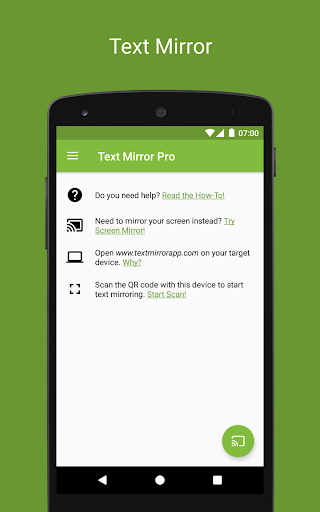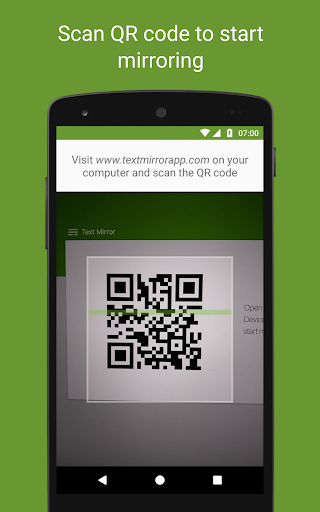 Just open https://www.textmirrorapp.com on your remote device, start the text mirroring process on your Android device, scan the QR code and the mirroring starts immediately. As simple as that. No additional software on your target device is needed.