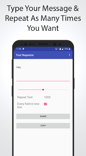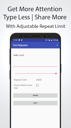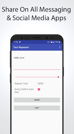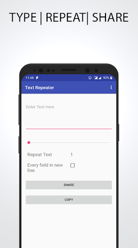 with Text Repeater one can type the desired message, simply repeat it & share it with anyone.