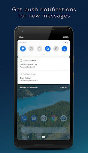 Though not as robust as the desktop app, this Android app makes it easy for you to send and receive texts, get notifications, and toggle between multiple text numbers (dashboards).