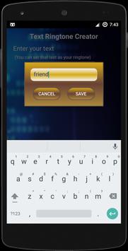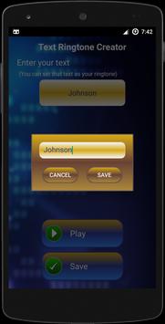 > Now you can create unique ringtone with this free application. You can play the tone for test and you can save with this application, Text Ringtone Creator. This app will create your name ringtone. If you would like to create your name or your beloved ones name then it become easy to create and set as ringtone.