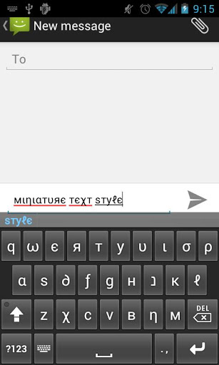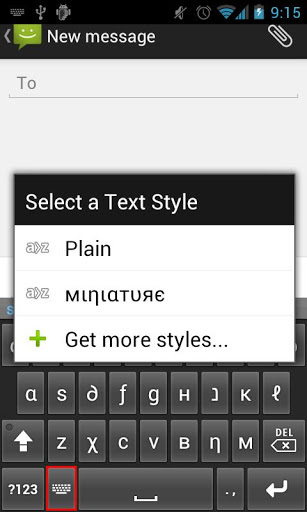 Want to spice up your facebook status, comment on friends status and photos, update Twitter status, update myspace status, SMS and Email your friends with cool new text style?STYLE: c Switch between Plain and Stylized keyboard with Text Styler Keyboard Miniature To enable the keyboard, go to Language and keyboard in the settings, and check Text Styler Keyboard Miniature box. Then long press in any text input area until a popup menu appears, select quot;Input Methodquot; in this menu, and choose quot;Text Styler Keyboard Miniaturequot; in the list. To change style, click on the keyboard icon between quot;?123quot; and SpacebarPlease ignore the warning about the keyboard quot;collecting your personal dataquot;, this is a standard Android message when you activate any third party input method. Text Styler Keyboard does not have permission to access the Internet, so none of your inputspersonal information is collected or submittedNote: This app is intended to be a fun app. Some of the features such as spell check and auto correct are overlooked. Please email support@ipthing.com if you have trouble using the appIf you need MORE STYLES, check out the Full package of Text Styler Keyboard which contains all of the styles amp; symbols.