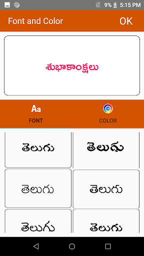 Here Telugu Keyboard is added in App for Styling Telugu Text With this You can type in Telugu and add Telugu Text for your Designs.