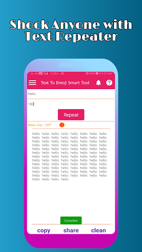 ◆ Repeat Text to Unlimited Time on One Click Because Its Best All in one Tool App. It’s Text to Emoji Smart Tool.