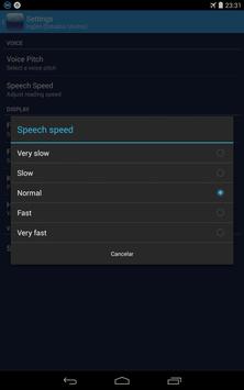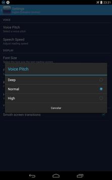 Droid Talk is a tool that uses the Text-to-speech engine on your device to read any text, even shared from other Apps. Also features: