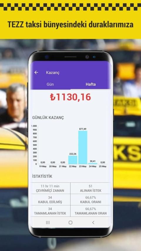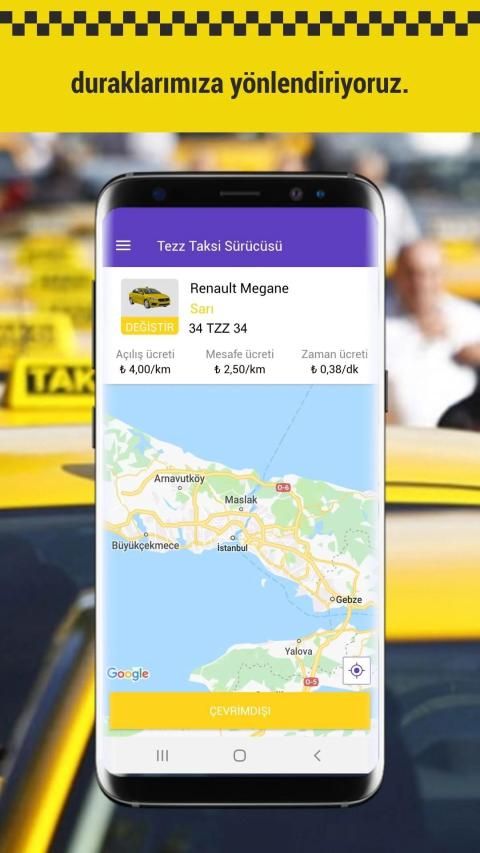 Taksi şoförü arkadaşlarımızı günün her saatinde taksi ihyacı olan duraklarımıza yönlendiriyoruz. Zaman kaybı ve boş km yapmadan TEZZ taksi sisteminden iş almasını sağlayarak kazançlarına katkıda bulunuyoruz. Teknolojiyi duraklarımızla birleşrip taksilerimizi ulundukları konum üzerinden müşteriyle buluşturuyoruz.