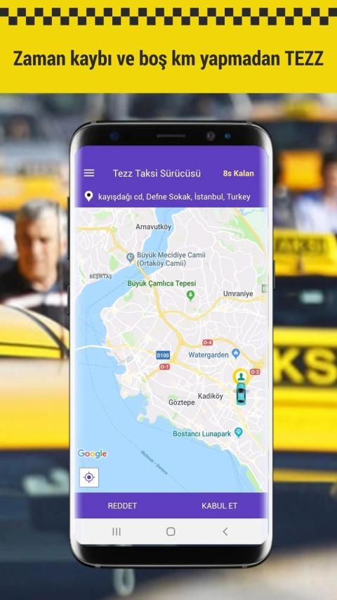 hedef edinmişr. Duraktaki Tezz Taksi sistemiyle, adrese yakın konumdaki