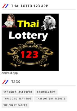 Thai lottery 123 android application available from today on Google Play Store. You can download this app and can get updates of all papers and tips and results.